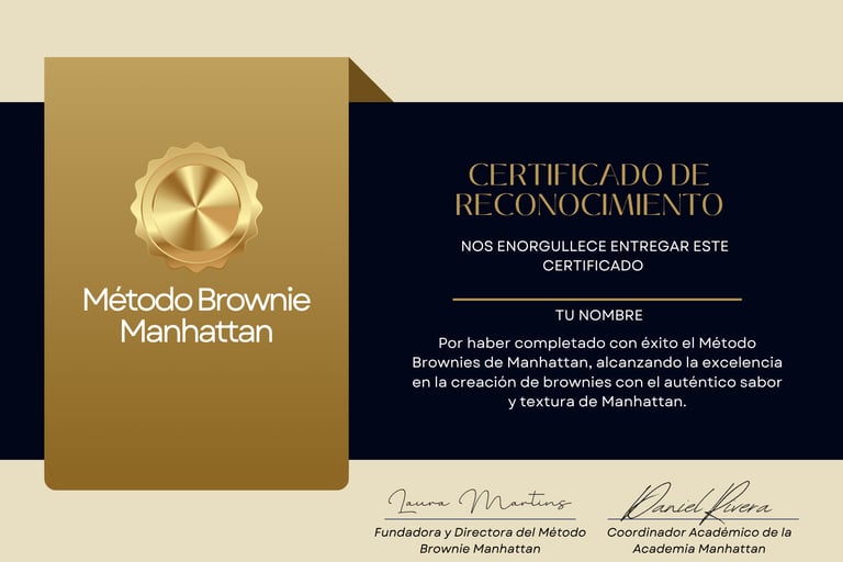 Certificado Manhattan Profesional Certifica tu formación en el Método Brownie Manhattan y refuerza tu imagen como emprendedora profesional ante tus clientes.